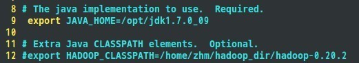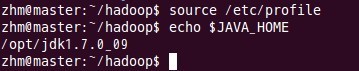 在配置site文件之前需要作一些准备工作,下载java最新版的JDK软件,可以从oracle官网上下载,我使用的jdk软件版本为:jdk1.7.0_09,我将java的JDK解压安装在/opt/jdk1.7.0_09目录中,接着配置JAVA_HOME宏变量及hadoop路径,这是为了方便后面操作,这部分配置过程主要通过修改/etc/profile文件来完成,在profile文件中添加如下几行代码: