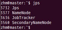 在主结点master上查看namenode,jobtracker,secondarynamenode进程是否启动。