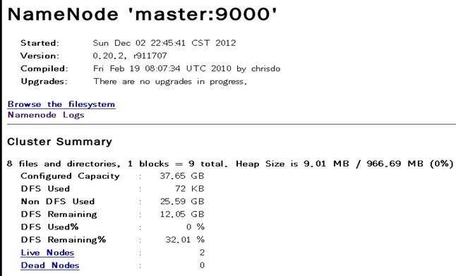在浏览器中输入:http://192.168.1.100:50070,网址为master结点所对应的IP: