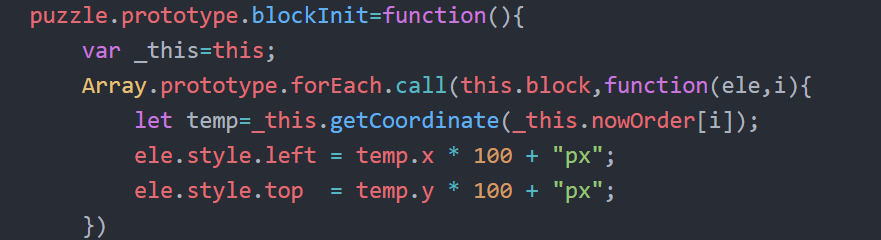 初始化每一个小方块位置方法(block为全部小方块dom,这里借用数组方法forEach遍历div)