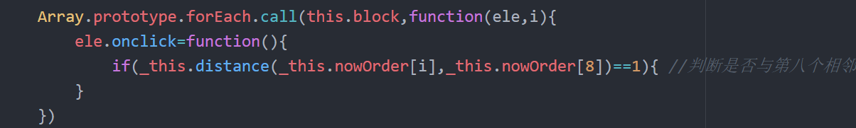 (6)如何判断点击的方块是否能移动,首先我们将最后一个方块隐藏,如果点击的方块距离最后(8号)方块距离为1则表示可以移动,及两个状态可以转化,
