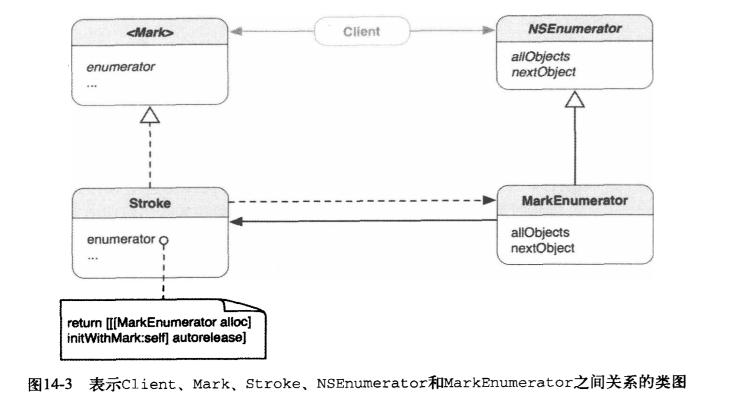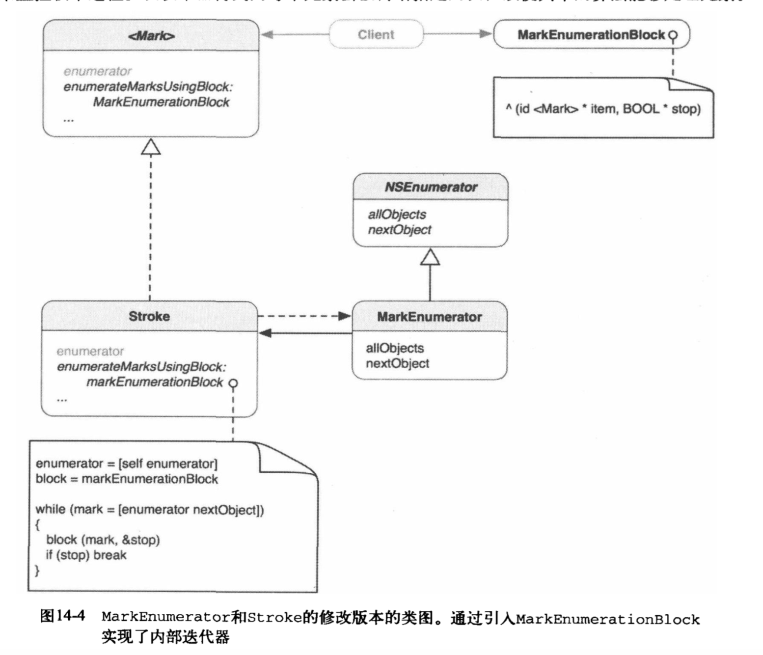 @protocol Mark <NSObject,NSCopying>@property (nonatomic, strong) UIColor *color; @property (nonatomic, assign) CGSize size; @property (nonatomic, assign) CGPoint location;- (void)addMark:(id<Mark>)mark;- (void)removeMark:(id<Mark>)mark;- (void)removeAllMarks;- (id<Mark>)childAtIndex:(int)index;- (id<Mark>)lastChild;- (NSUInteger)count;- (instancetype)copy;//迭代器- (NSEnumerator *)enumerator;//内部迭代器- (void)enumerateMarksUsingBlock:(void (^) (id <Mark> mark, BOOL *stop))block;@end;