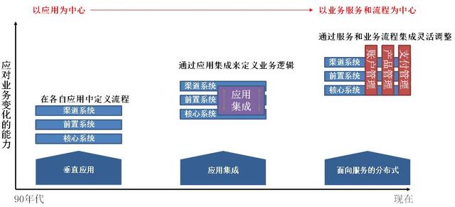 【案例】随着架构的演变,过去一站是构建的竖井式系统,逐步发展为现在的以服务为单元可灵活构建的独立单元: