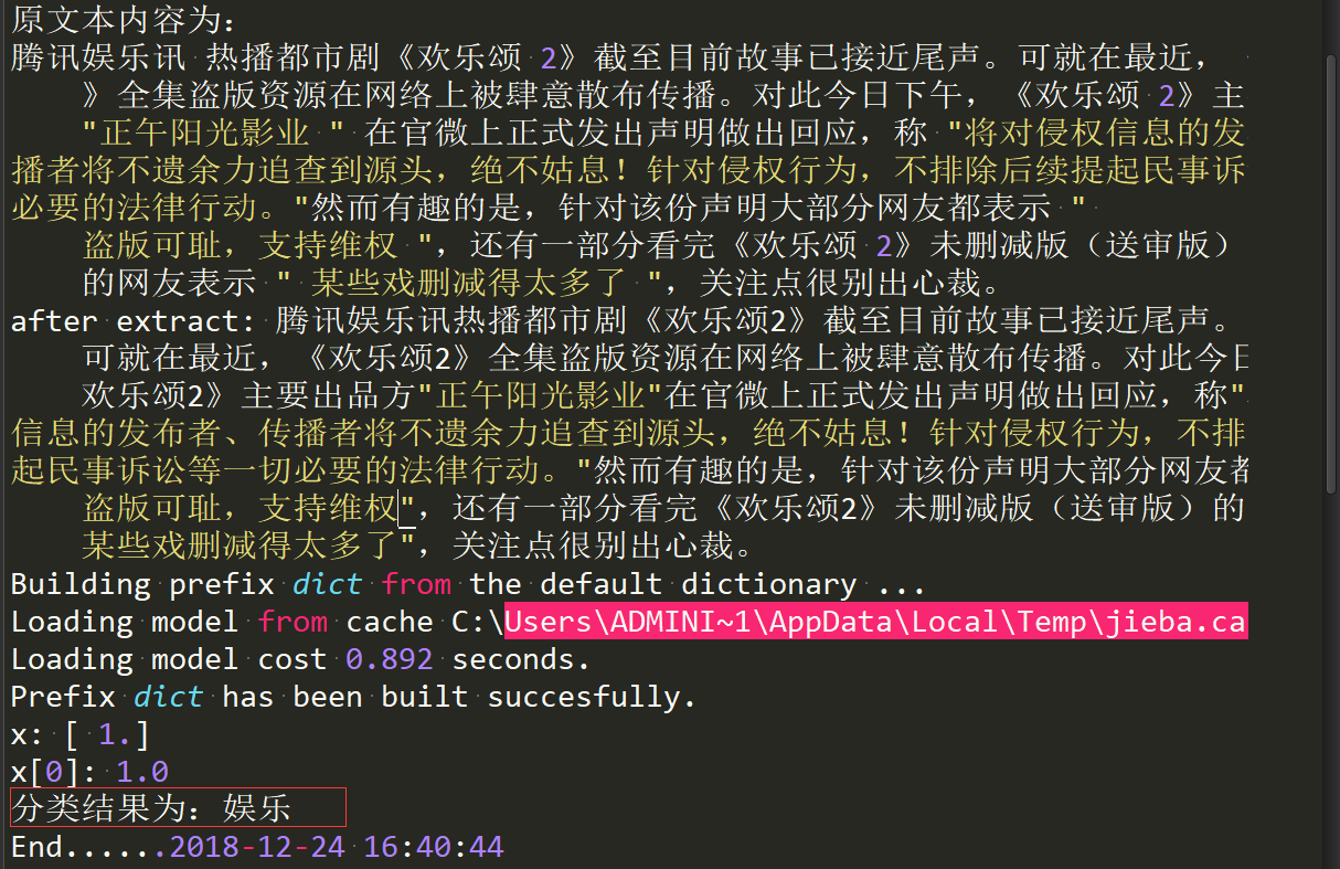 的,是等这些所谓停用词特征对分类起的作用不大,很难达到工程应用。我们将原始数据放假预处理黑匣子后,会自动过滤掉干扰数据,并且还会按照规约的方法体现每个词特征的重要性,然后将词特征压缩变换在数值型矩阵中,再通过分类器就会取得不错的效果,可以进行工程应用。