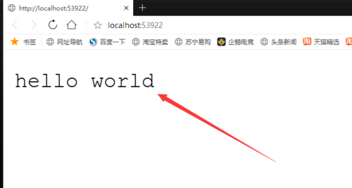 这里的Get方法有两个参数,第一个参数就是和.NET Core MVC Route 差不多,那么第二个就是action,就是具体的定义,我们启动项目,发现网站正确的显示出了Hello World!