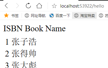 <table> <tr> ISBN </tr> <tr> Book Name </tr> <tbody> @Each.list <tr> <td> @Current.StudentID </td> <td> @Current.StudentName </td> </tr> @EndEach </tbody> </table>
