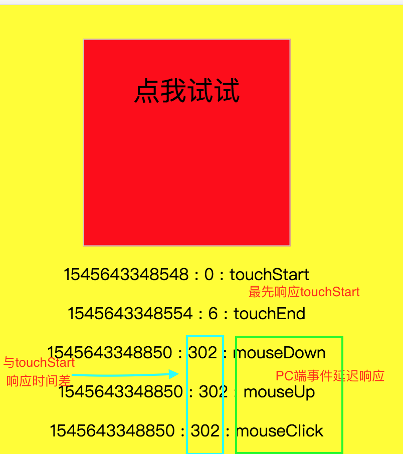 //new Date().getTime()-startTime 获取事件响应与touchStart的时间差