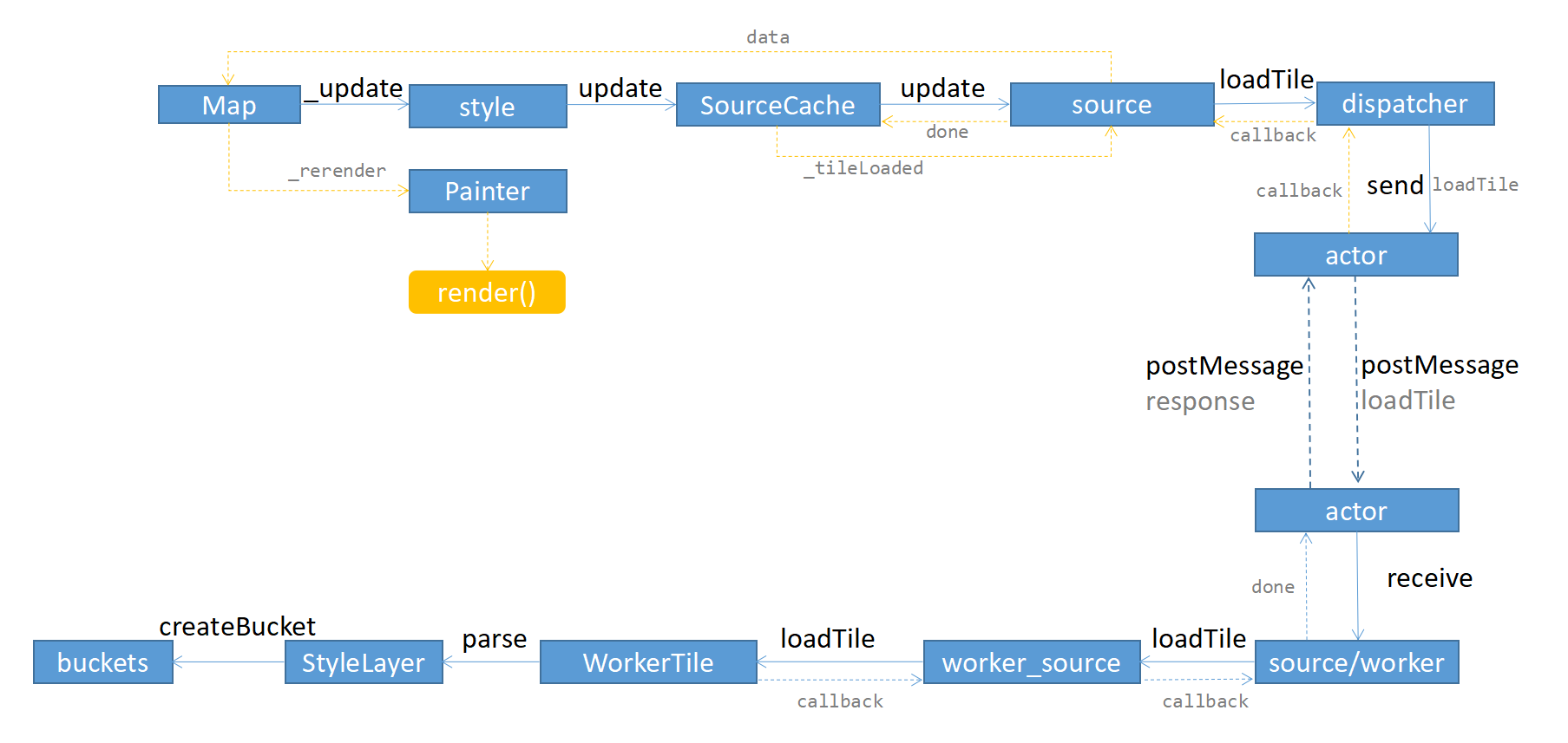 mapbox的架构有些奇怪,接口层和逻辑层其实没有明确的区分;mapbox中style是一个比较重要的类;统辖整个数据层次;Painter中集成了draw和style两个模块