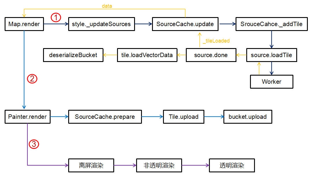 以vector_tile_source和vector_tile_worker_source为例介绍,实际的数据解析在vector_tile_worker_source中的loadTile方法,这里接收主线程中传递的参数,以及子线程的回调函数,应该是Actor中的done函数