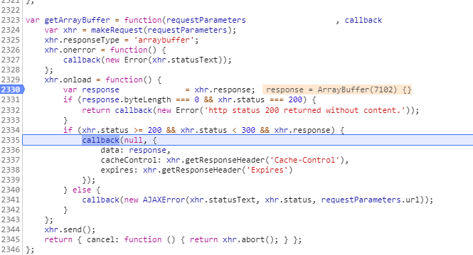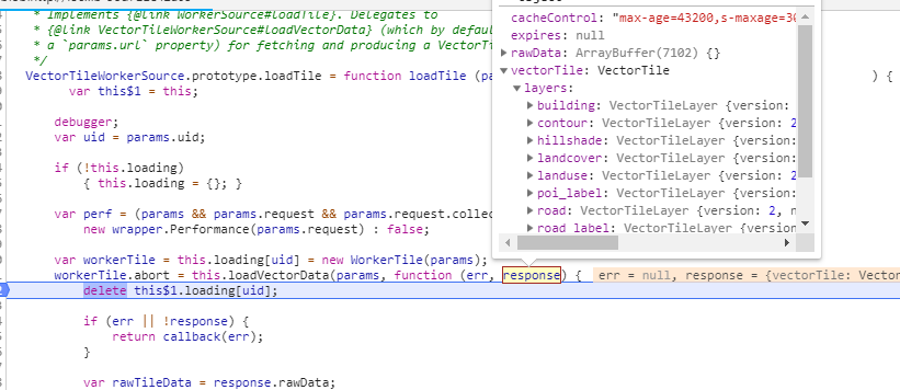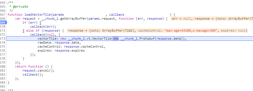 loadVectorData函数,getArrayBuffer是调用普通的ajax去请求二进制数据,与室内的数据方式一样。数据请求成功后,将二进制数据实例化成一个