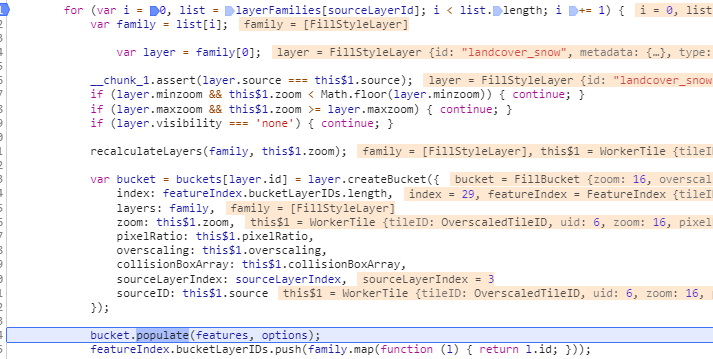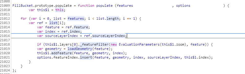 polulate可以理解为首先根据比例进行数据缩放,然后调用addFeature方法,将Feature的几何图形信息添加到bucket的vertexArray中,然后FeatureIndex记录一些信息。