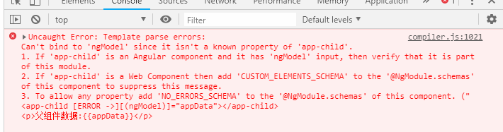 如果添加ngModel后报如下错误,检查组件对应的Module文件有没有导入FormsModule