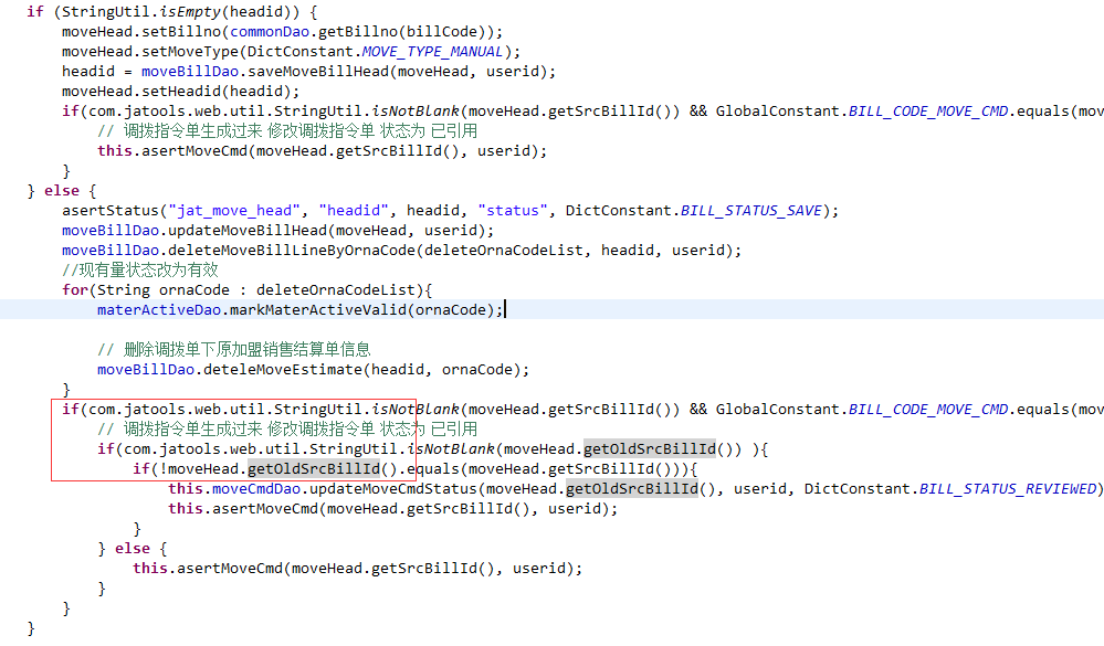 If嵌套导致的可读性灾难在Java程序里非常常见,我看别人的遗留代码就是这个感受。一个原因是Java没有像C#这样的linq工具,以及一些语法糖,导致很多常用的计算也要自己写if语句实现,这些代码再套在业务代码中,if层次就很多了,还有比如字段定义都需要生成getter和setter方法(我的Java功力太浅薄,看到大家写Java代码都是这么写,但却不能理解为什么一定要遵循这个范儿),取数判断都是getXXX(),导致布尔表达式代码看着一长串,代码太长又导致很多Java程序员会把一个if拆开成多个嵌套的if来写。比如这个if层次达到了4层(这还不算多,我见过七八层的都有,但一时找不到更多嵌套的例子):