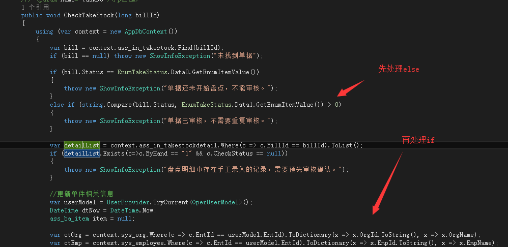 优先处理else,就是先处理异常的逻辑,并return,从而将 if else的写法替换为if return,从而使得if else 嵌套层级-1。一段代码中,先后的多个if语句都使用这种方式,可使嵌套层级持续减少,可能原本需要五六层级的if嵌套,最后只需要一级if语句实现,代码健壮性和可读性大大增强。