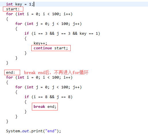 我们对比.Net和Java的语法,发现在goto、break、continue上是有区别的。Java没有goto,而使用了break和continue的功能加强来替代goto的功能。而C#保留了goto,且不提供Java中break和continue中加强的功能。