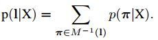 (2)接下来通过对path删掉所有连续重复的label和删去所有的NULL,把path转换成label序列的形式。所以会有类似这样的形式:M(-aa-b-b--ccc)=M(abb---bc-)=abbc,“-aa-b-b--ccc”和“abb---bc-”都是path,而“abbc”则是label序列。于是可以计算出每一个label序列的概率: