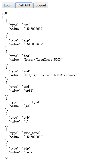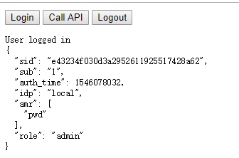 });接下来,我们要实现登录、api和注销功能。UserManager提供登录用户的signinRedirect和用户登出的signoutRedirect。我们在上述代码中获得的用户对象还有一个access_token属性,可以使用该属性对web API进行身份验证。access_token将通过Bearer模式传递给Web API。添加以下代码在我们的应用程序中实现这三个功能: