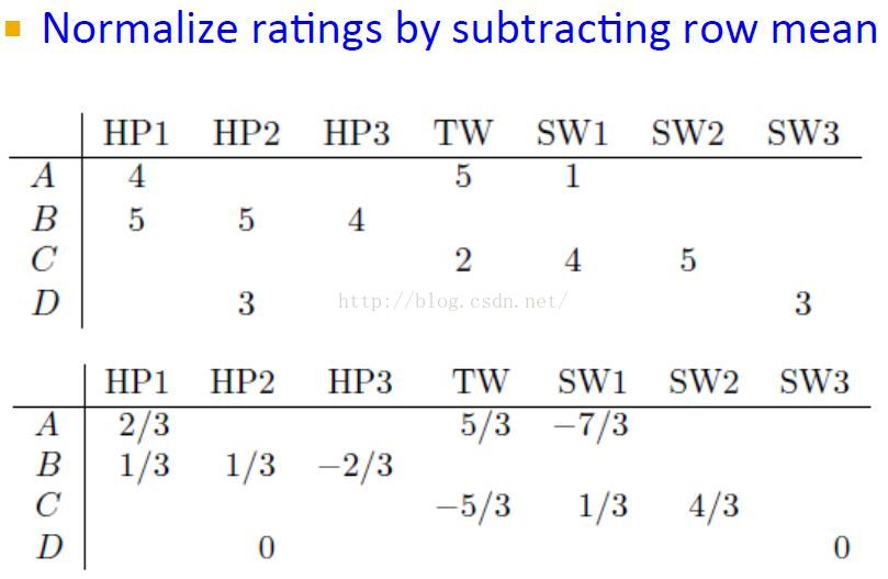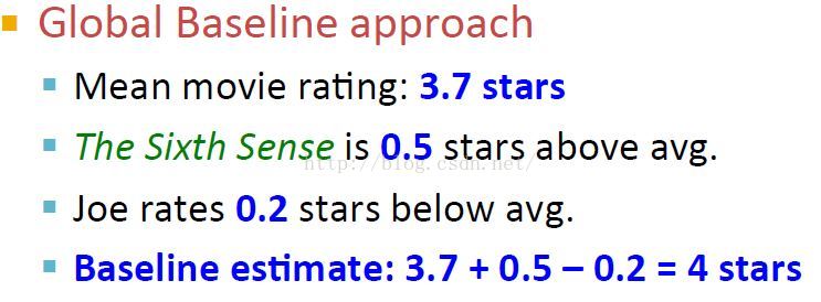 给分者的偏颇问题:tough raters:给分相对较小不慷慨。easy raters:给分总是比较高,慷慨。即不同用户的给分程度是不一样的,如有的用户很mean,给分都很低,有的很generous,给分都很高,所以所有用户减去其给分的均值比较好。