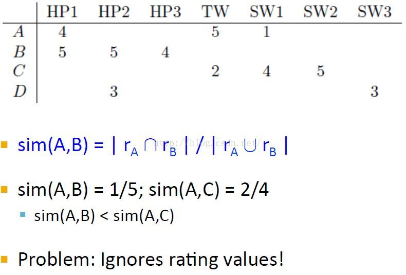 Jaccard相似度没有考虑评分,导致相似度计算错误。