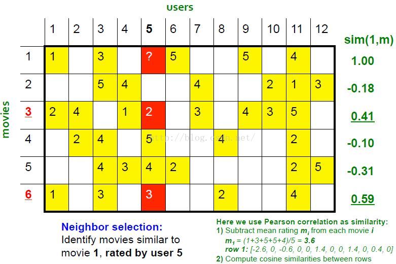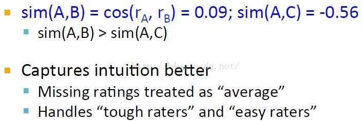 皮尔逊相关系数将缺失值设置为均值,符合没打分的要求;同时也解决了给分者的偏颇问题。tough raters:给分相对较小的,不慷慨的。easy raters:给分总是比较高的,慷慨的。