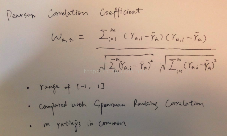 Note: 公式中 \bar{r}_u表示用户u对u和v共同打分过的items的打分均值average value over the ratings of u on the items both u and a have rated,m是user a和user u共同打分过的items数目。
