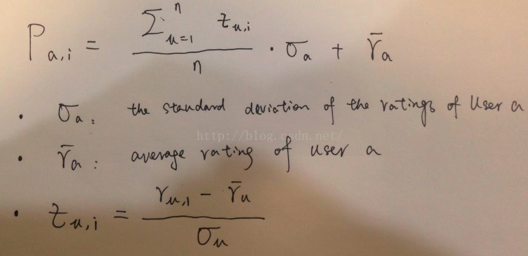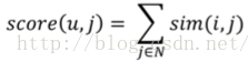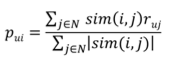 改进上面的非个性化思路,计算均分时只考虑与当前user a相似的用户对item i的评分,这样对item i的评分都有一个权重(即user u和a的相似度)。