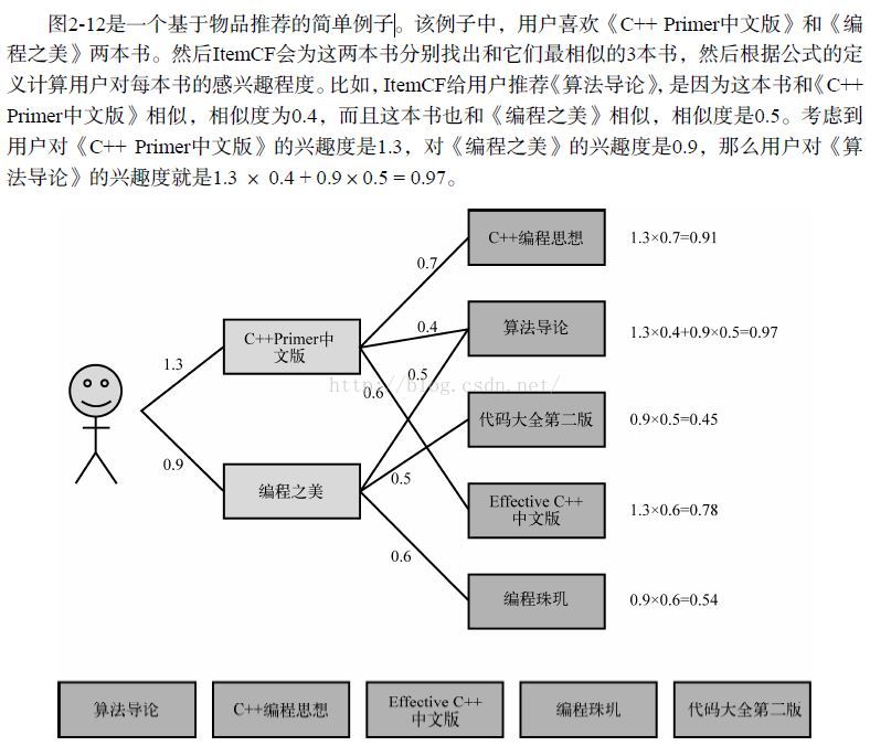 ItemCF在图书、电子商务和电影个性化推荐中的优势:在图书、电子商务和电影网站,比如亚马逊、豆瓣、Netflix中,ItemCF则能极大地发挥优势。首先,在这些网站中,用户的兴趣是比较固定和持久的。一个技术人员可能都是在购买技术方面的书,而且他们对书的热门程度并不是那么敏感,事实上越是资深的技术人员,他们看的书就越可能不热门。此外,这些系统中的用户大都不太需要流行度来辅助他们判断一个物品的好坏,而是可以通过自己熟悉领域的知识自己判断物品的质量。因此,这些网站中个性化推荐的任务是帮助用户发现和他研究领域相关的物品。因此,ItemCF算法成为了这些网站的首选算法。此外,这些网站的物品更新速度不会特别快,一天一次更新物品相似度矩阵对它们来说不会造成太大的损失,是可以接受的。