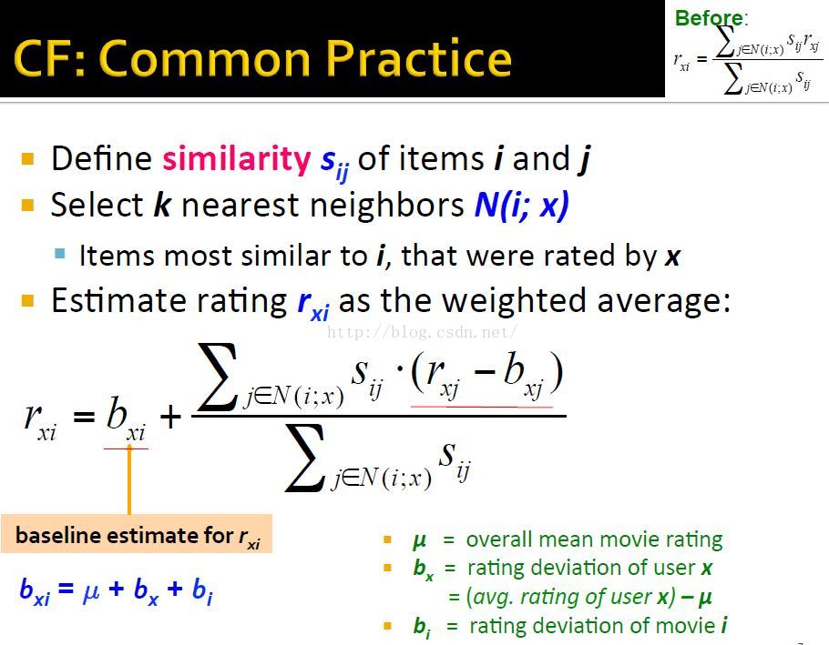 Note: 其实这里就是将减去的用户均值μ+bx替换成了更好的baseline bxi。