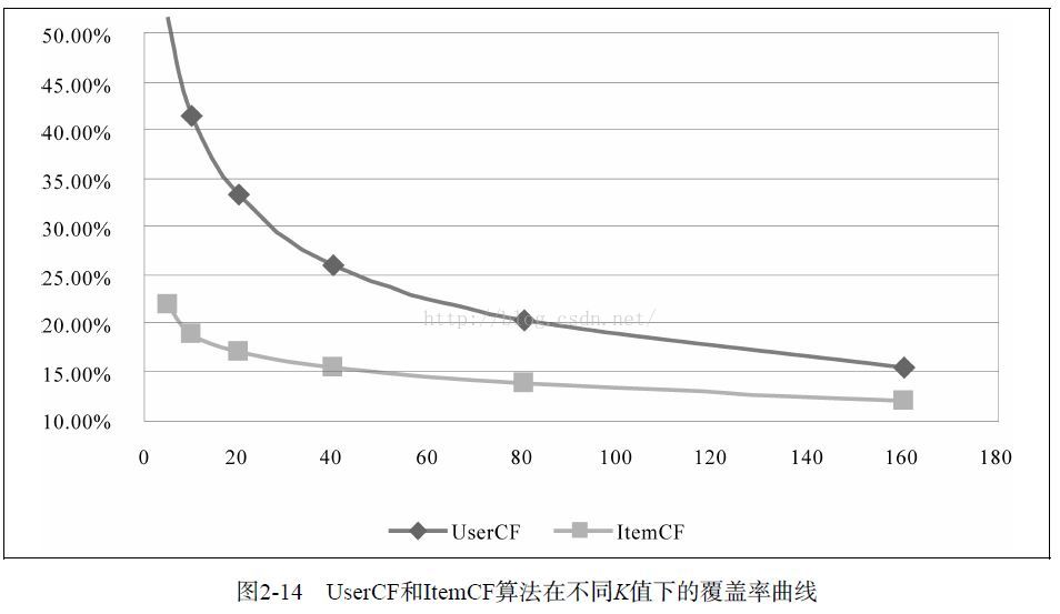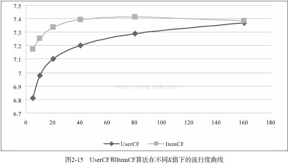 要指出的是,离线实验的性能在选择推荐算法时并不起决定作用。首先应该满足产品的需求,比如如果需要提供推荐解释,那么可能得选择ItemCF算法。其次,需要看实现代价,比如若用户太多,很难计算用户相似度矩阵,这个时候可能不得不抛弃UserCF算法。最后,离线指标和点击率等在线指标不一定成正比。而且,这里对比的是最原始的UserCF和ItemCF算法,这两种算法都可以进行各种各样的改进。一般来说,这两种算法经过优化后,最终得到的离线性能是近似的。