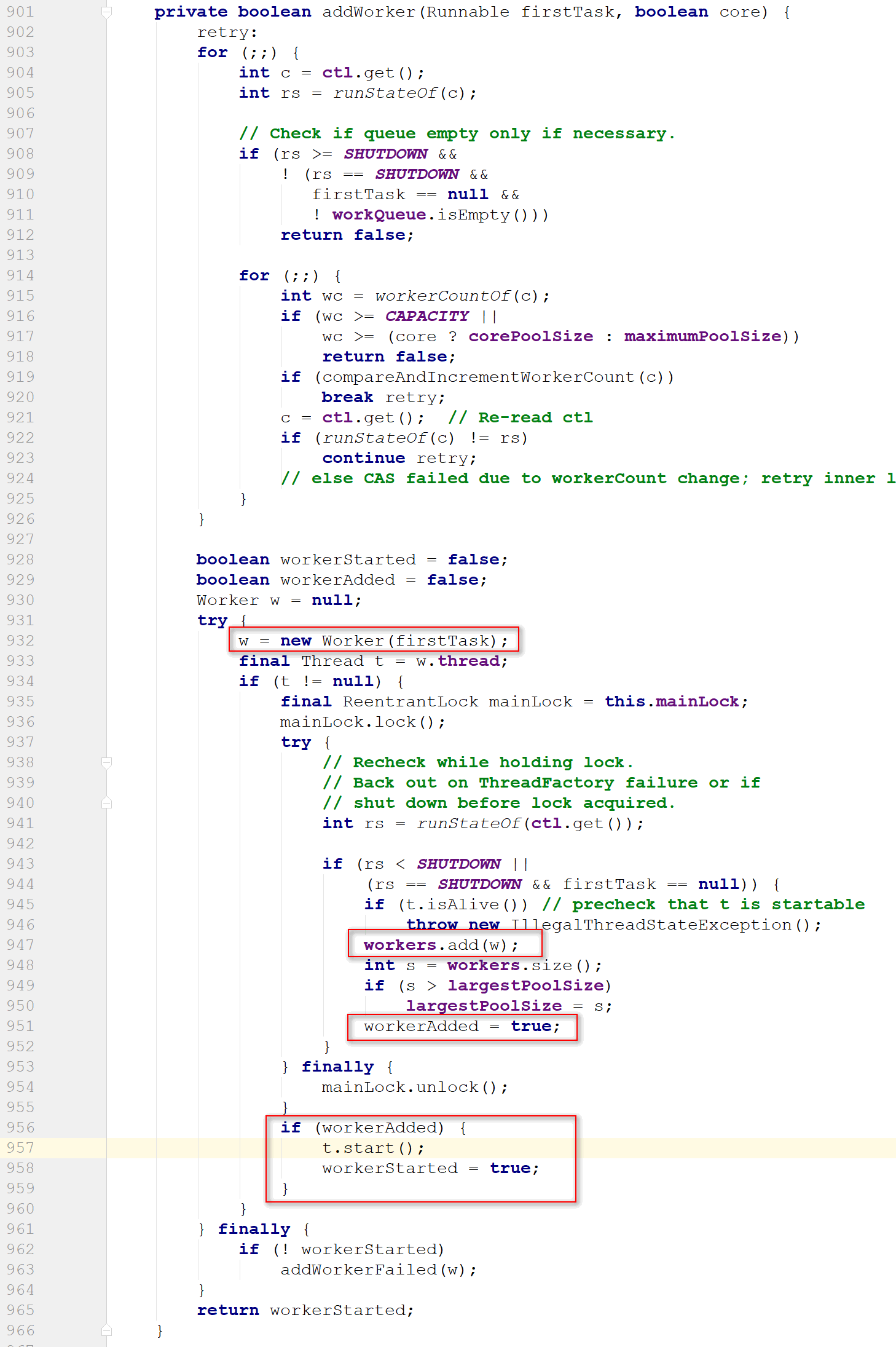 主要是:创建Workder对象,并将该对象加入到Worker集合中,最后启动Worker(PS:启动Worker中的线程是启动Worker)