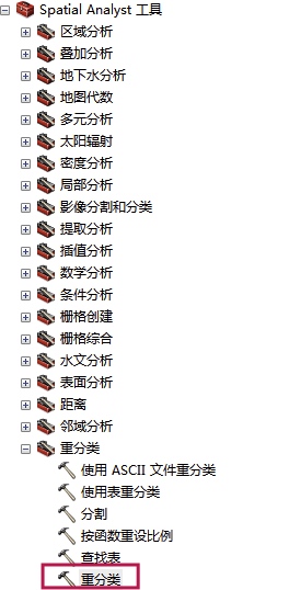 【重分类】工具非常强大,在spatial扩展和3D扩展都带这一工具,它是统计学与GIS结合非常友好的一个工具。只要涉及到数据统计模型,基本上可以跟重分类扯上关系。