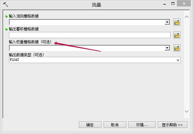 在流量统计的时候有一个参数叫做权重栅格,这个参数对于水文研究是非常重要的,但它却是一个可选项,如下图所示