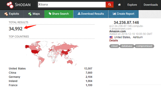Elasticsearch Kibana是荷兰Elasticsearch公司的一套开源的、基于浏览器的分析和搜索Elasticsearch仪表板工具,作为Elasticsearch的核心组件,Kibana可作为产品或服务提供,并与各种系统,产品,网站和企业中的其他Elastic Stack产品配合使用。 由于Kibana在大数据领域用途较为广泛,此次漏洞影响范围较大, Shodan搜索结果如图