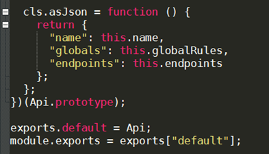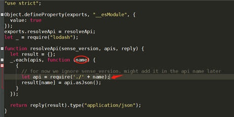 Apis得到的值传递给赋值参数name,从图上也能看到name变量的内容没有进行任何过滤被引入到require,而require模块在Nodejs里表示加载模块的方式,可以加载核心模块,例如内置的“http”,也可以是包含名为“index.js”这样的文件或目录如果参数以“/”、“./”、”../”开头则函数知道该模块是文件或者文件夹,继续跟进到函数asJson所在的api.js文件中