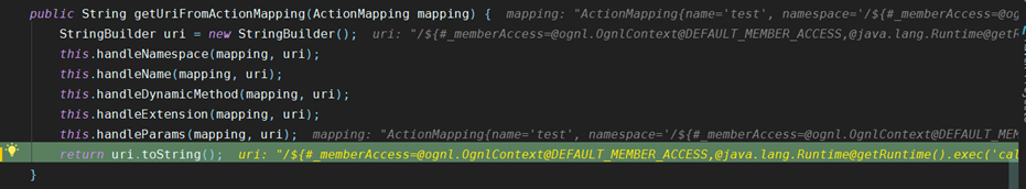 通过getUriFromActionMapping获取的值赋给了tmpLocation变量,接着表达式进入setLocation方法