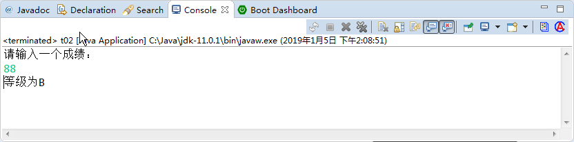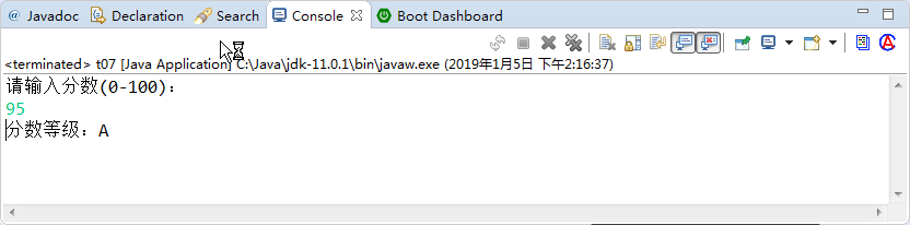 System.out.println("请输入一个成绩:");