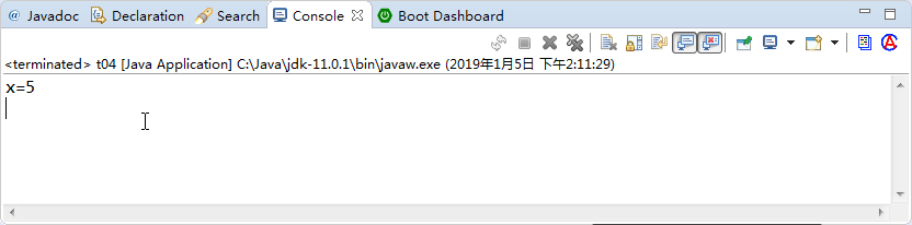 System.out.println("x=5");