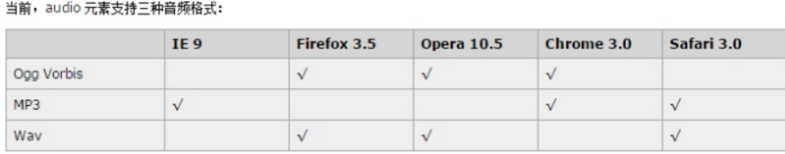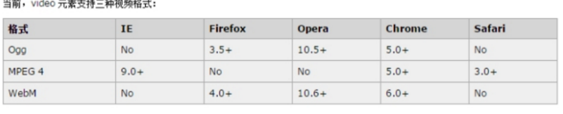 由于版权等原因,不同的浏览器可支持播放的格式是不一样的,如下图供参考