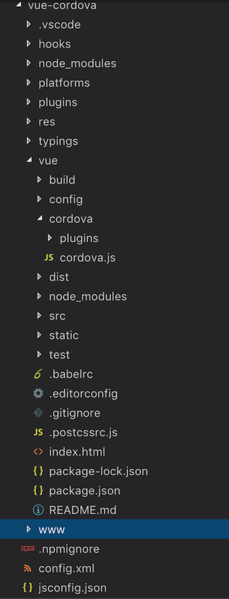 //新建cordova 项目 cordova create vue-cordova //进入目录 cd vue-cordova //vue-cli新建vue项目 vue init webpack vueprojectname //进入vue 项目目录 cd vueprojectname //安装依赖 npm i