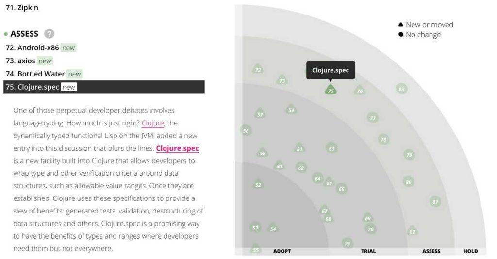 Clojure.spec是Clojure内置的一个新特性,它允许开发人员将数据结构用类型和其他验证条件(例如允许的取值范围)进行封装。这种数据结构一旦建立,Clojure就能利用这种规格来为程序员提供大量的便利:自动生成的测试代码、合法性验证、析构数据结构等等。Clojure.spec提供方法很有前景,它可以让开发者在需要的时候,就能从类型和取值范围中获益。