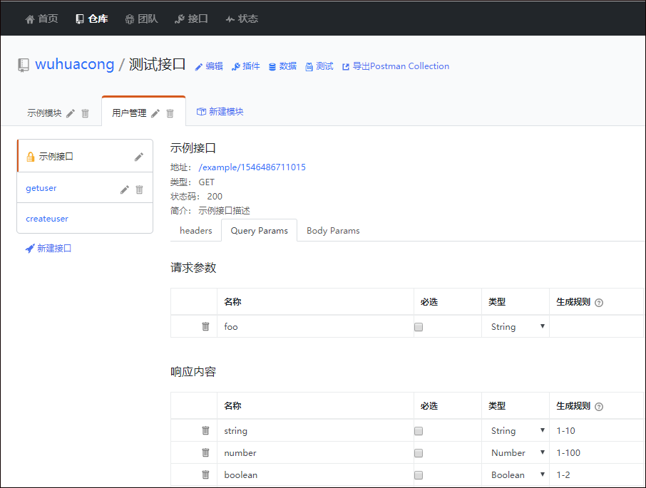 默认有一个示例接口指引我们做相关的参数或者响应内容