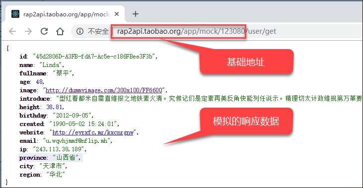 这个URL地址是我们逻辑上的相对地址,实际在使用的时候,我们加上一个基地址就可以了,在RAP2 它也是一个相对地址,测试接口的地址也是加上一个基础地址,这样我们实际开发的时候,把这部分基础地址替换为生产环境的地址即可顺利切换过去了。