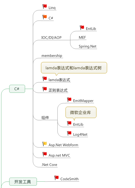 其中,标注为黄色旗帜的是基本掌握,标注为红色旗帜的为使用熟练。未标注的只是了解。