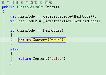 如果被注册为scoped,svc2并且svc3将是同一个实例,但不同的请求会获得不同的实例;如果在Transient 的情况下,它们都是不同的实例。
