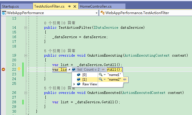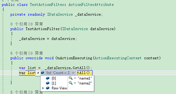 为了[ServiceFilter(typeof(TestActionFilter))]工作,我们需要更多配置: