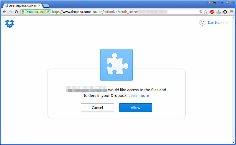 接着通过浏览器访问那个 oAUTH 网址,并同意访问你的 Dropbox 账户。