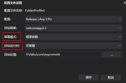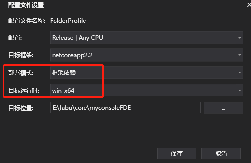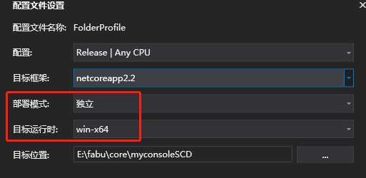 同样,我们将"目标运行时"设为 win-x64 演示效果: