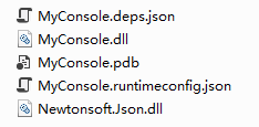 1个应用程序的程序集,1个pdb,2个json,1个第三方依赖项.